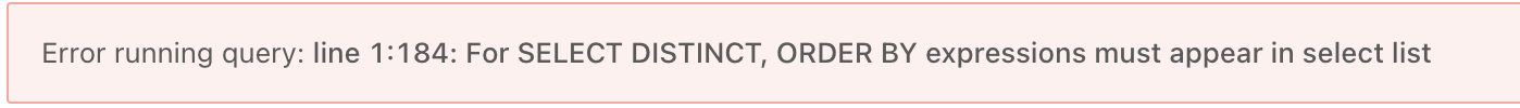 - 而prestosql或mysql都必须要求排序的字段必须包含在select子句中: